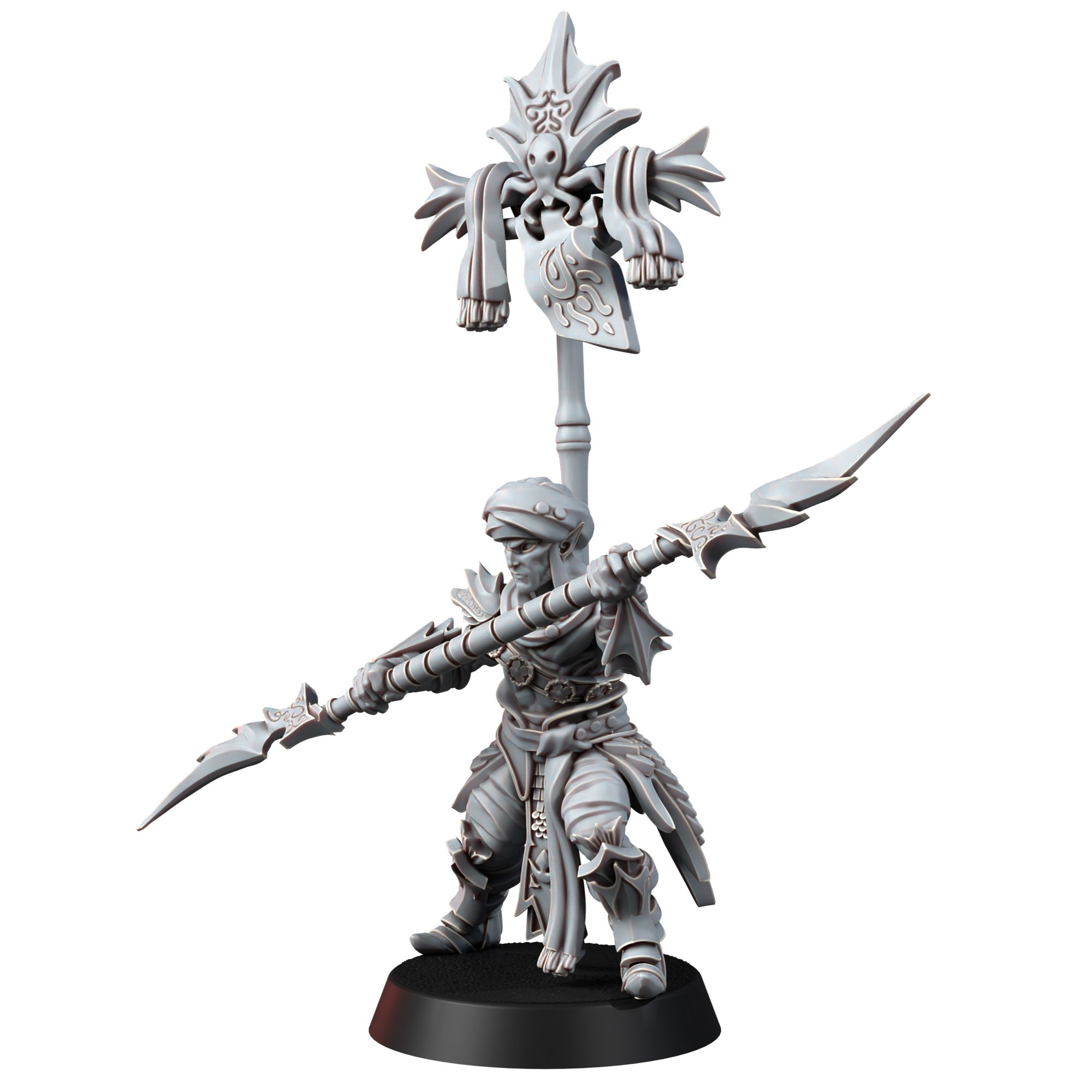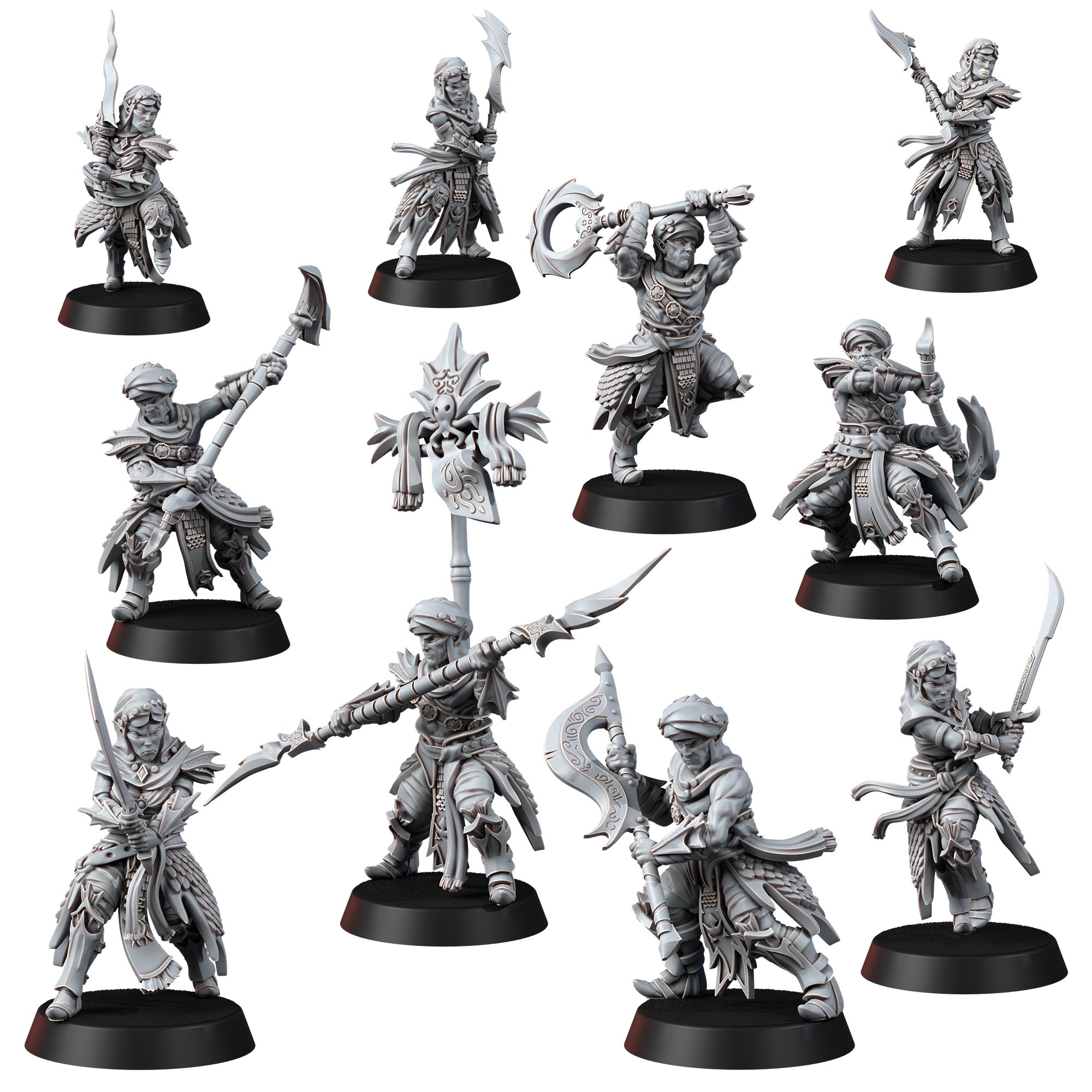 14k resin printed miniatures in 32 mm scale with bases. The miniatures require painting and assembly (use cyanoacrylate superglue only).