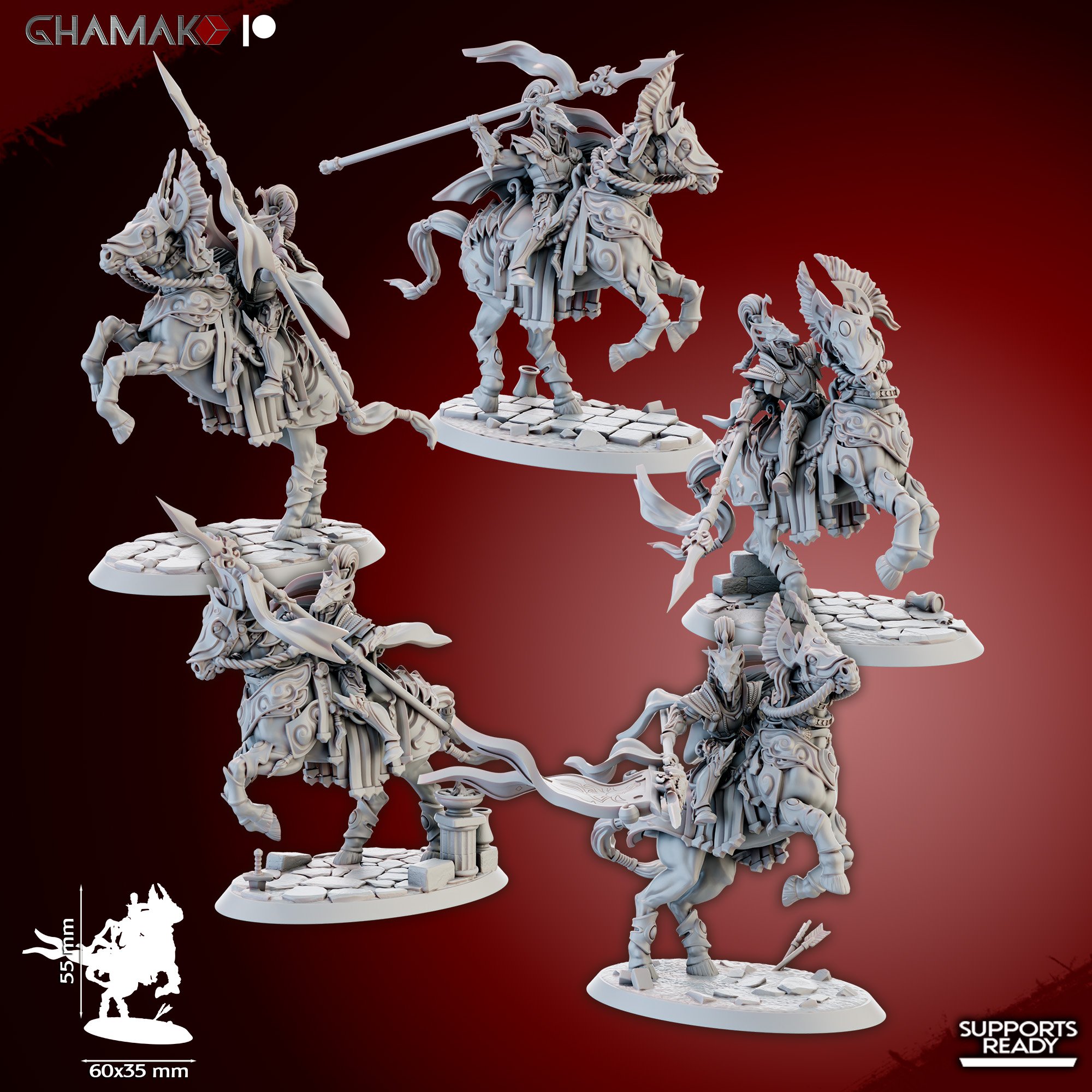 14k resin printed miniatures in 32 mm scale with custom bases. The miniatures require painting and assembly (use cyanoacrylate superglue only).