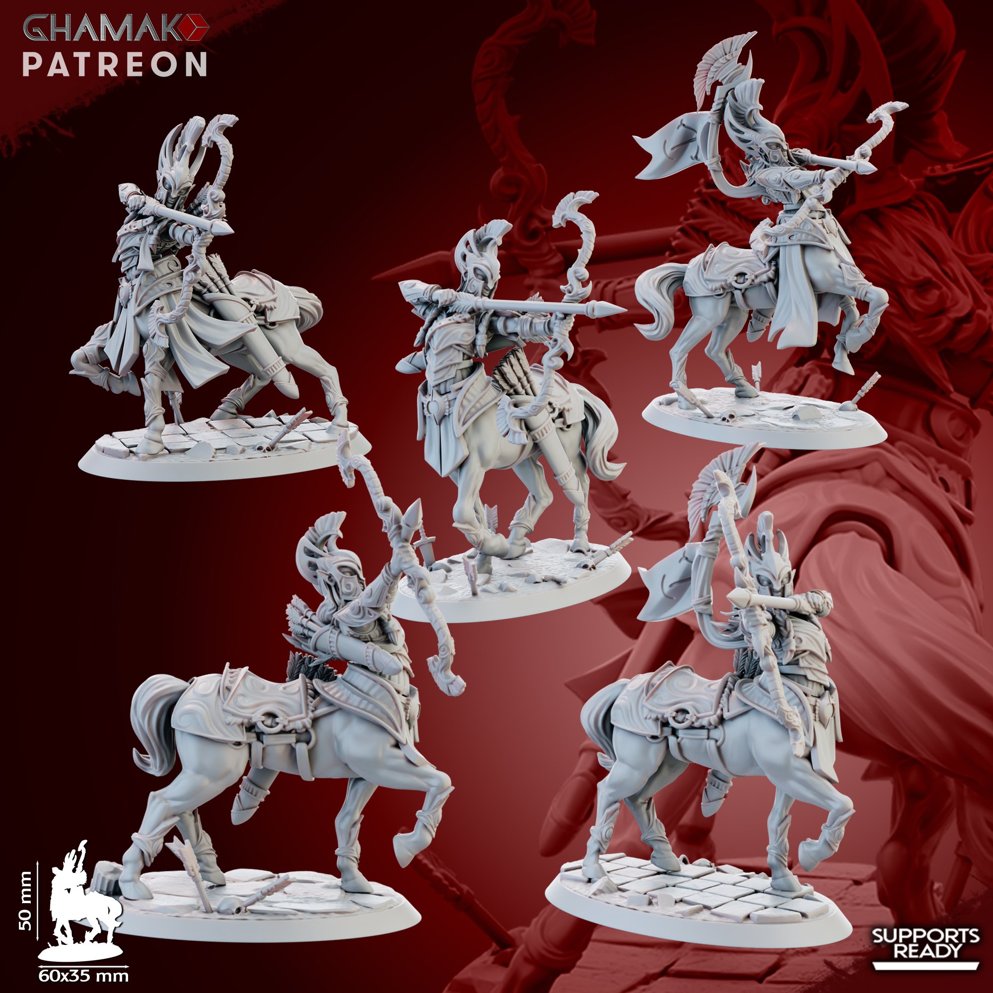 14k resin printed miniatures in 32 mm scale with custom bases. The miniatures require painting and assembly (use cyanoacrylate superglue only).