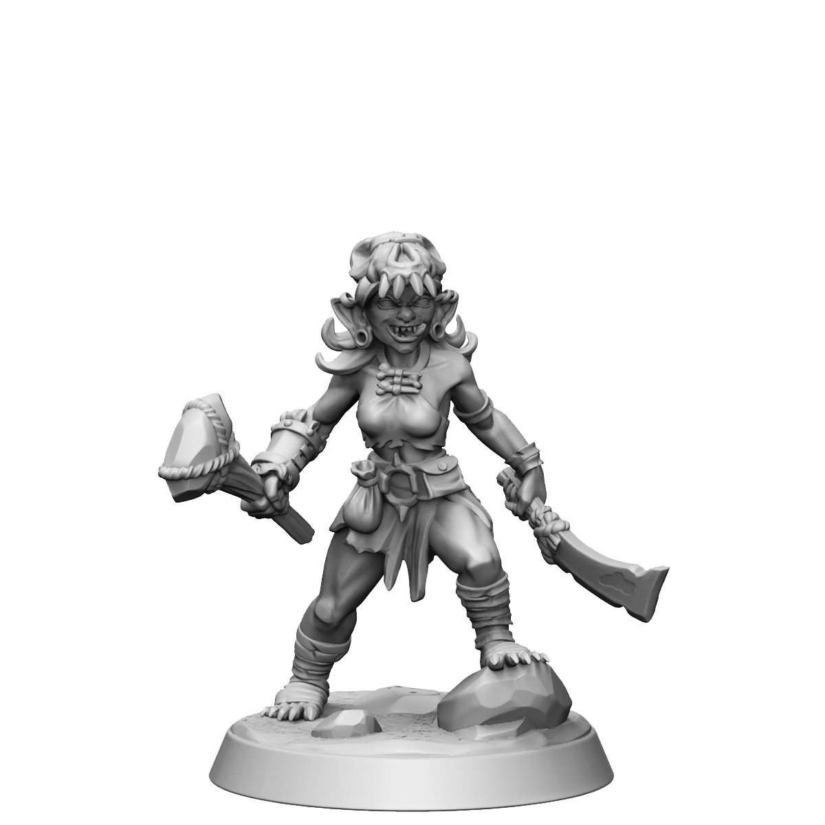 If you’re in search of a fierce and formidable character to join your tabletop adventure or wargaming squad, our Goblin Female Fighter model is the ultimate choice. With the strength and tenacity of a warrior, this character thrives in battle, using her combat skills and ferocity to overcome any obstacle. Cunning and quick-witted, she can outsmart even the most cunning opponents, and her boldness is as intimidating as any weapon.