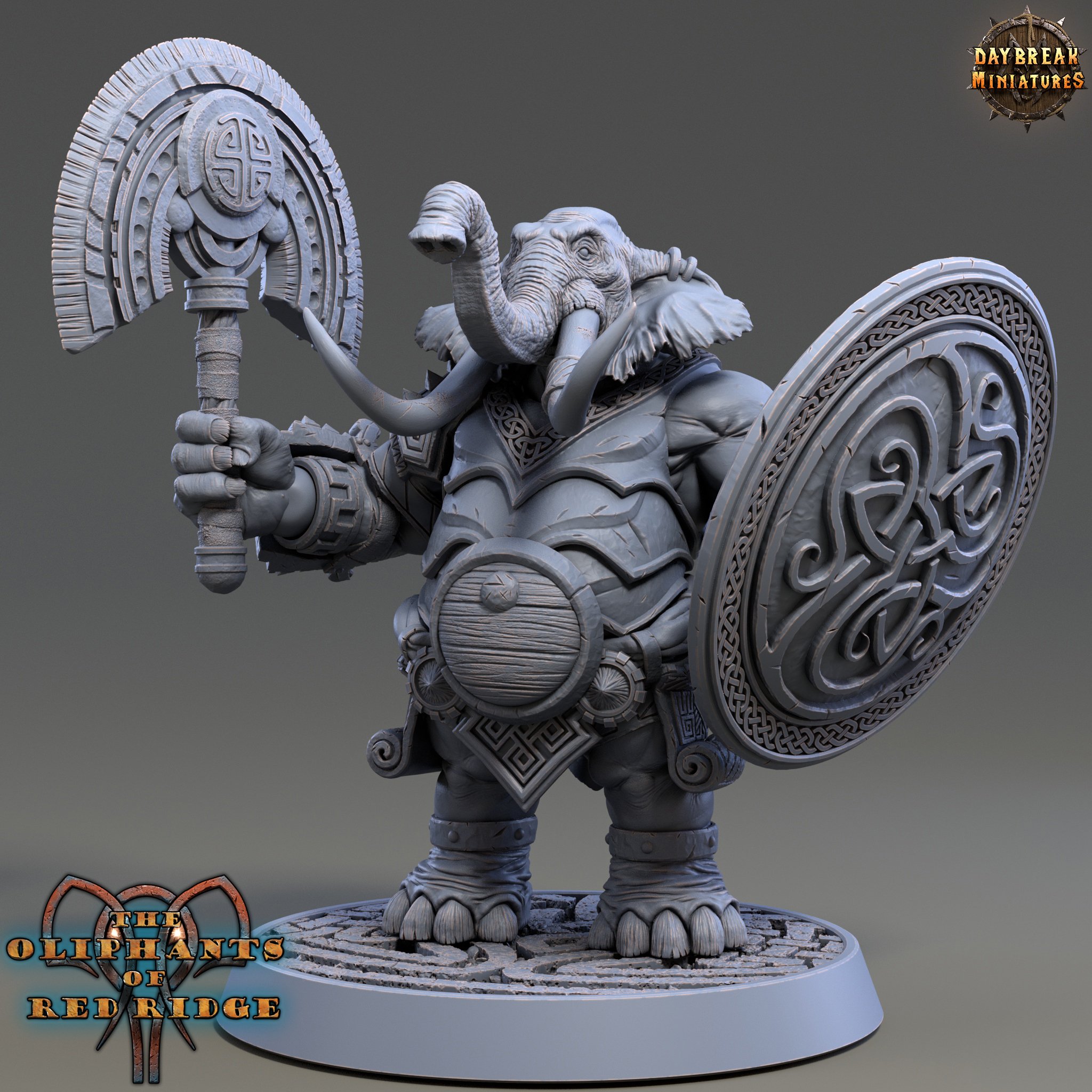From high above the deep forests in the tropical islands south of the Mundi Maard mainland, the mighty Oliphants of Red Ridge hold dominion over all lesser creatures. Since time immemorial these noble giants have let the sound of their mighty battle trumpets echo over land and sea, accompanying the words of their famous battle hymn: “Abandon all hope, ye pitiful who dare oppose us!”.