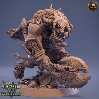 Within the granite caves above the mighty Fell Falls of southern Mundi Maard, a loathsome tribe of minotaurs have been hiding since time immemorial. Deceitfully raiding the countryside below, no one has ever really understood from where they strike. And now, amidst darkening times, these cloven hooved, lightning eyed carnivores have begun to flood the lands in ever greater numbers. What is their aim? To conquer the world of men? Or just to satisfy their lust for blood?