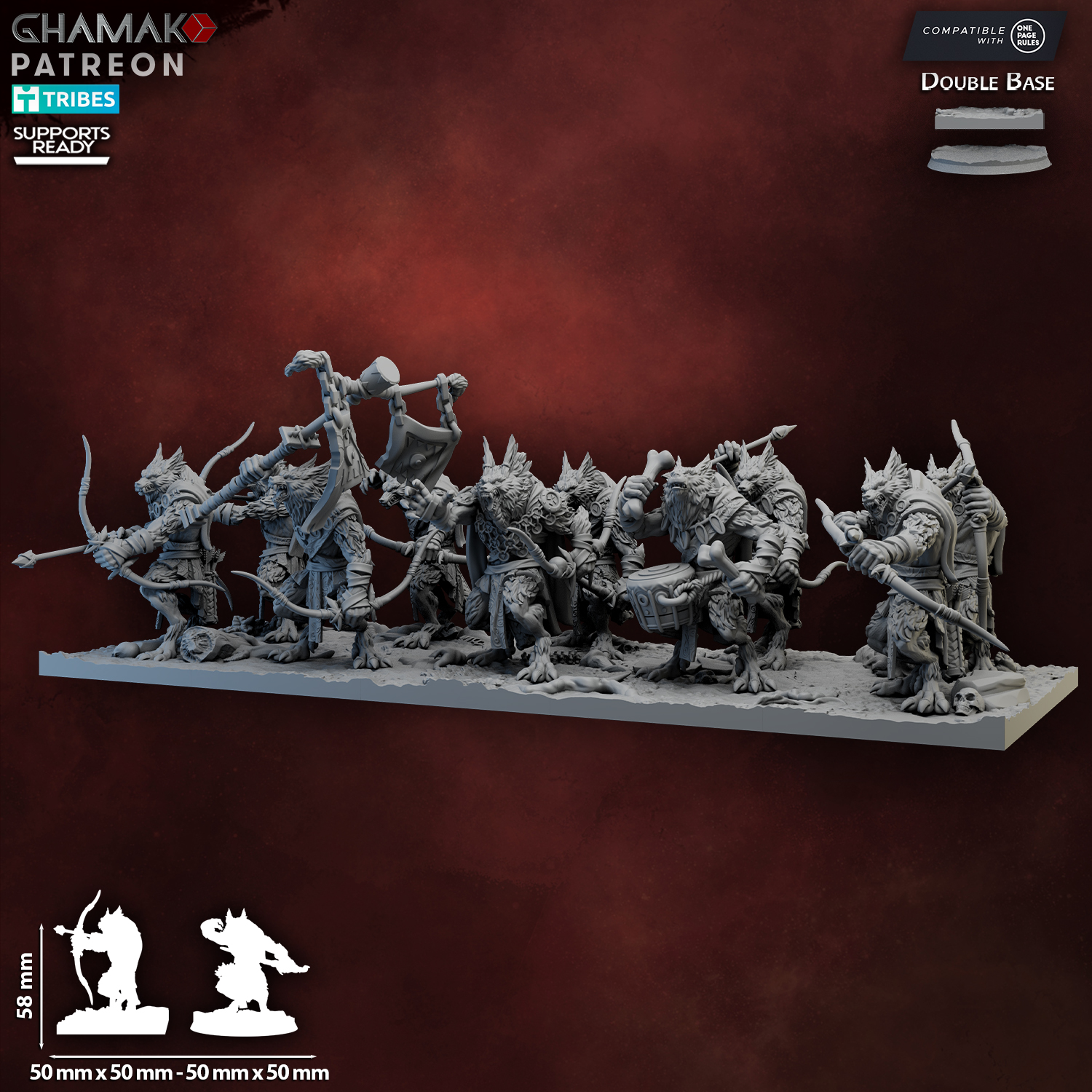 HQ resin miniature in 32mm scale with 50mm square Scenic bases.
