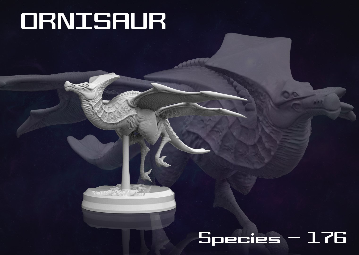 The Ornisaur is an alien species found on the exoplanet Aether, Planet 579a in the Milky Way Galaxy. It’s 150 years in the future and space exploration is a commerical enterprise. Pioneer teams are sent out to habitable planets to conduct in person research of the natural resources, and to set up working settlements for colonists to arrive. Many planets are simply mined for profit and others are colonised – space is now big business.