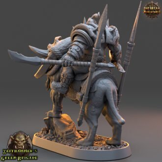 Zeithammer’s Green Brigade. Under the firm command of General Zeithammer, this band of savage orc fighters and war wizards scourges the battlefields of Mundi Maard with unmatched brutality. And by making use of his unique power to manipulate the space-time continuum, the General always has the tactical upper hand when facing any enemy regiment.